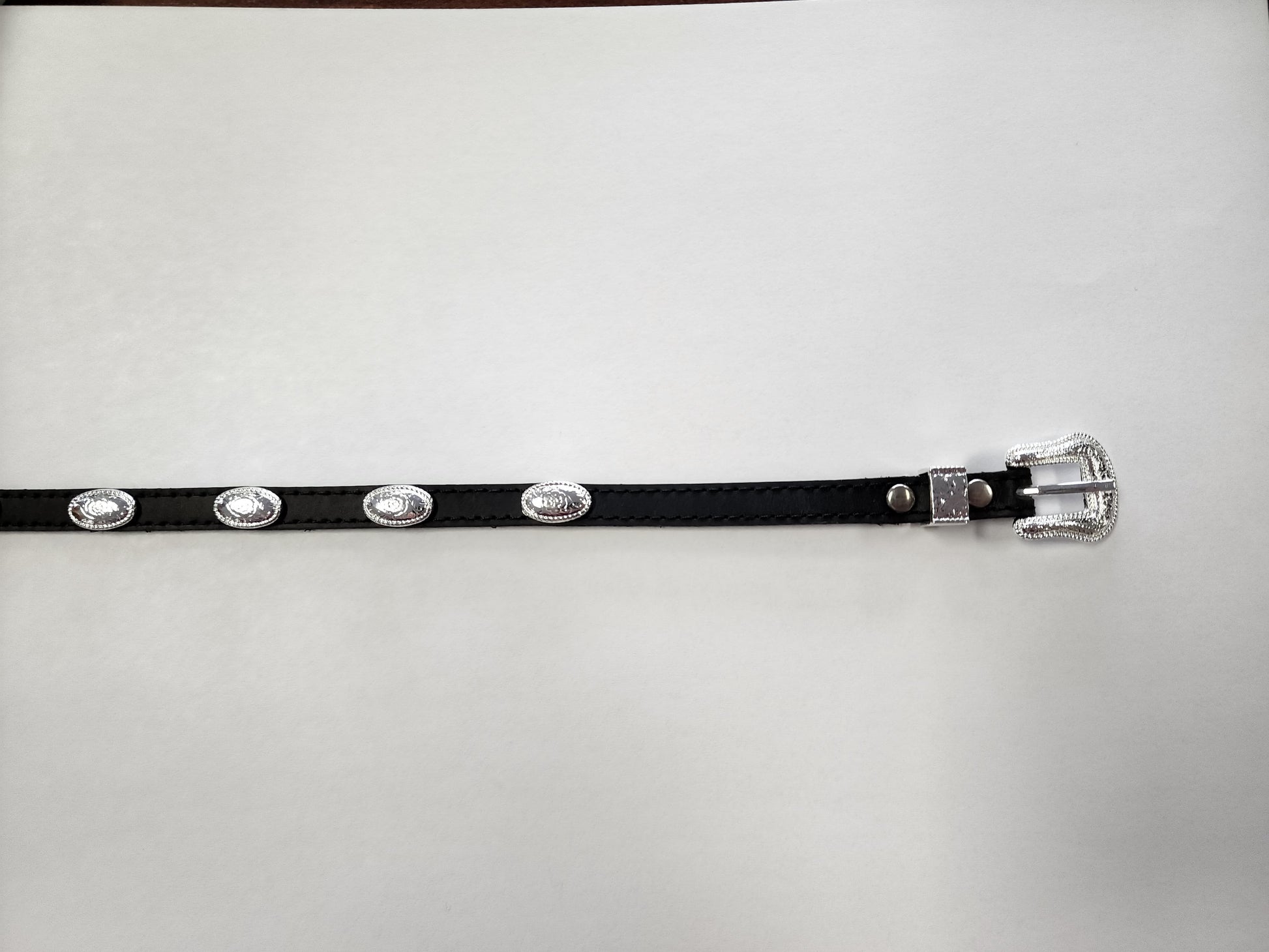 Create your own personalized hat style with this leather hatband by M&F Western Products. The oval silver conchos add a touch of western flare that will give your hat a great western look. This style hatband uses a belt style adjustment with a silver buckle.