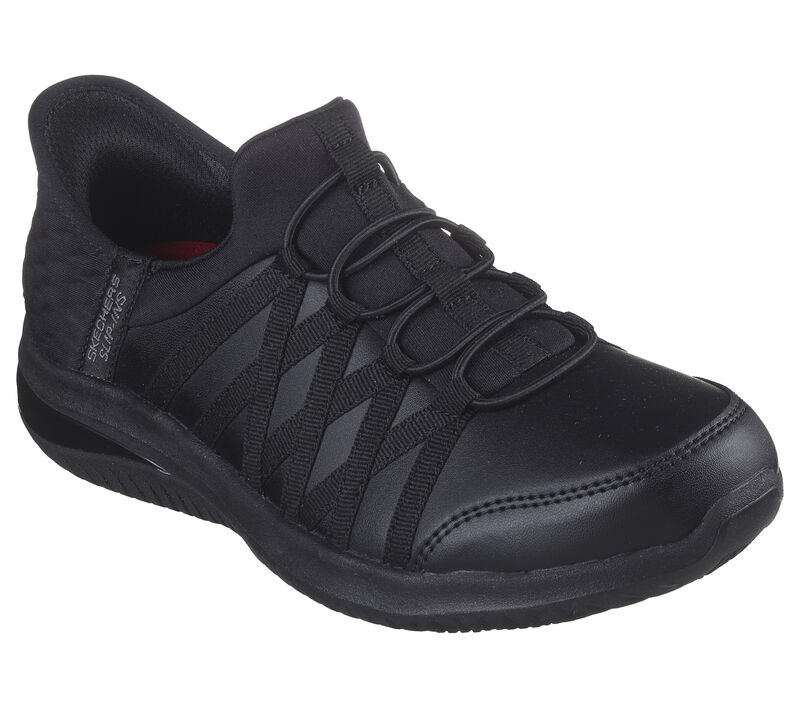 Trabaja con comodidad y seguridad gracias a los Skechers Hands Free Slip-ins® Work™ Relaxed Fit®: Dantey Parral. Este diseño de trabajo, amplio y antideslizante, cuenta con una parte superior de cuero, neopreno y material sintético, un panel de talón moldeado Skechers Slip-ins®, una exclusiva Heel Pillow™, plantilla Skechers Air-Cooled Memory Foam® y una entresuela Skech-Air® con cámara de aire.