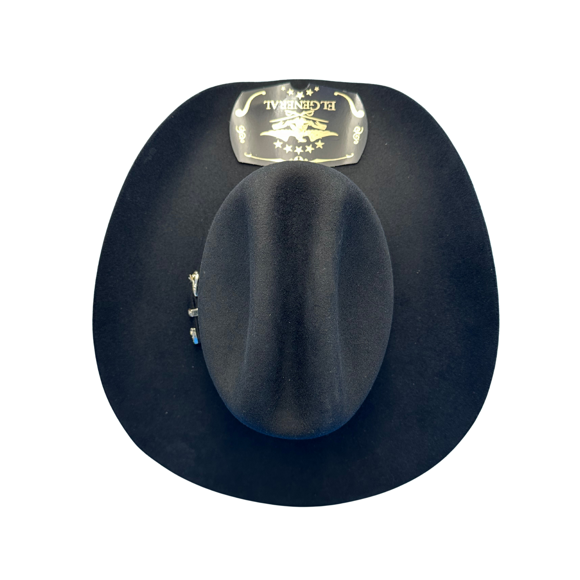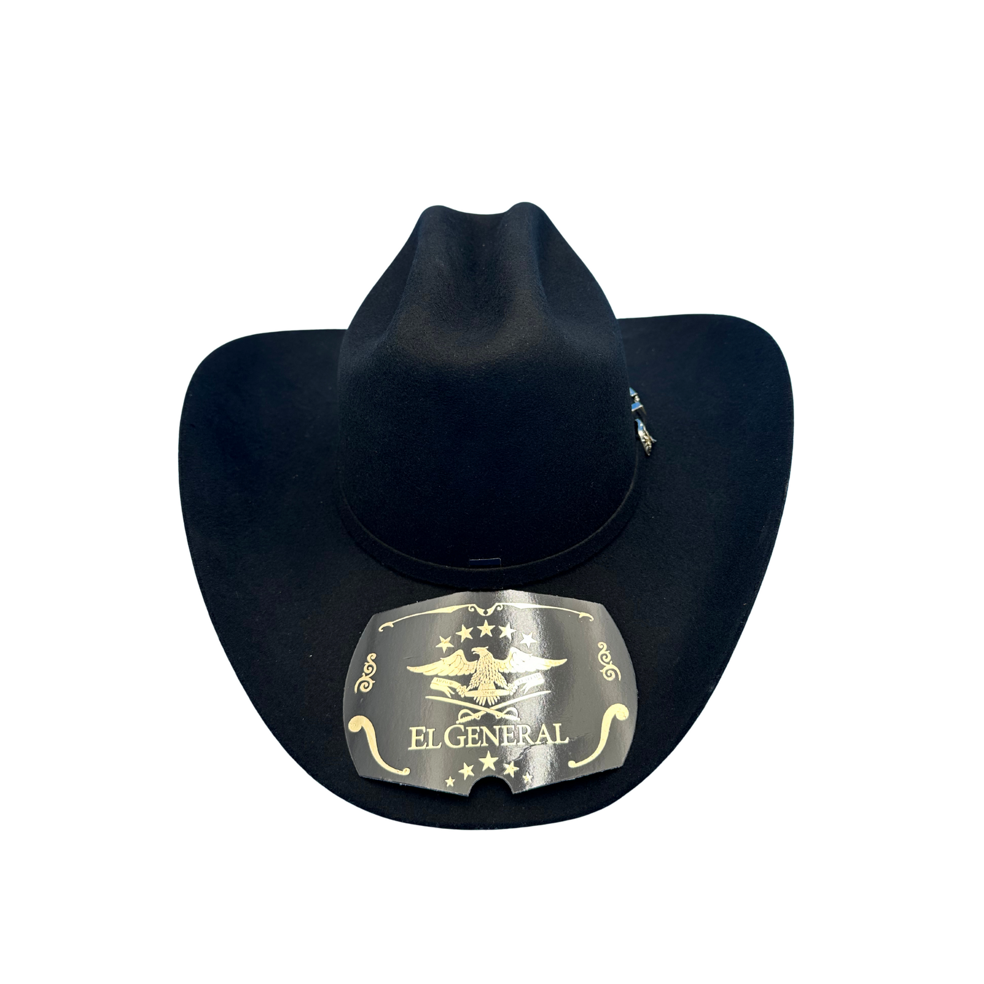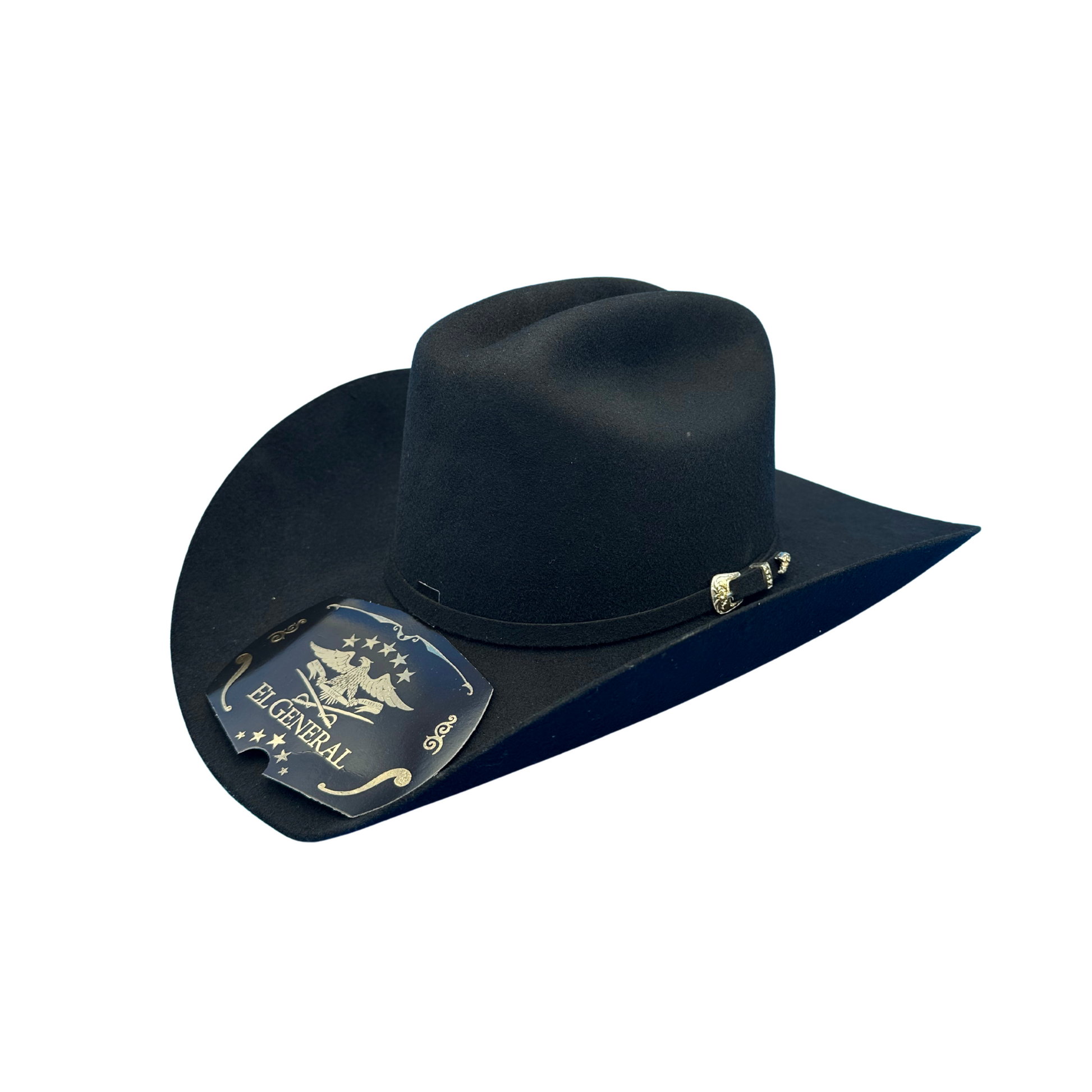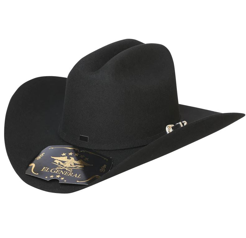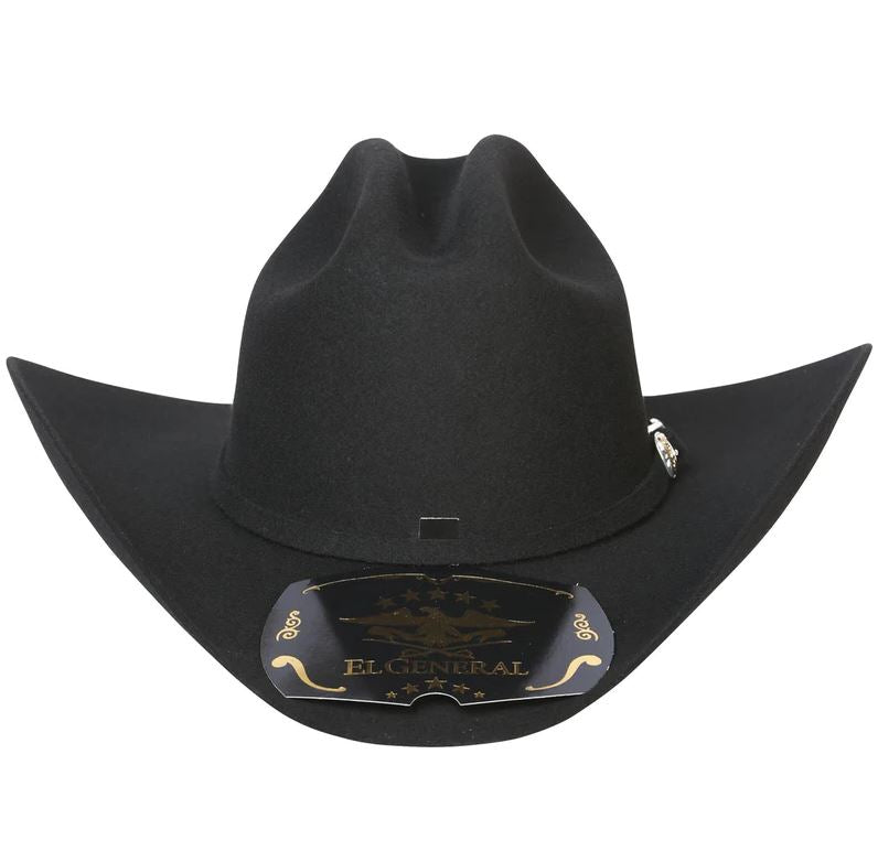 Luce la auténtica elegancia del oeste con este sombrero vaquero de El General, de calidad 50X. Con una clásica corona ganadera y ala ancha, está diseñado al estilo Joan Sebastian, combinando tradición y sofisticación. La cinta incluye una hebilla plateada para un acabado refinado. Fabricado con fieltro de primera calidad para mayor durabilidad y comodidad, es perfecto para conciertos, rodeos y ocasiones especiales.