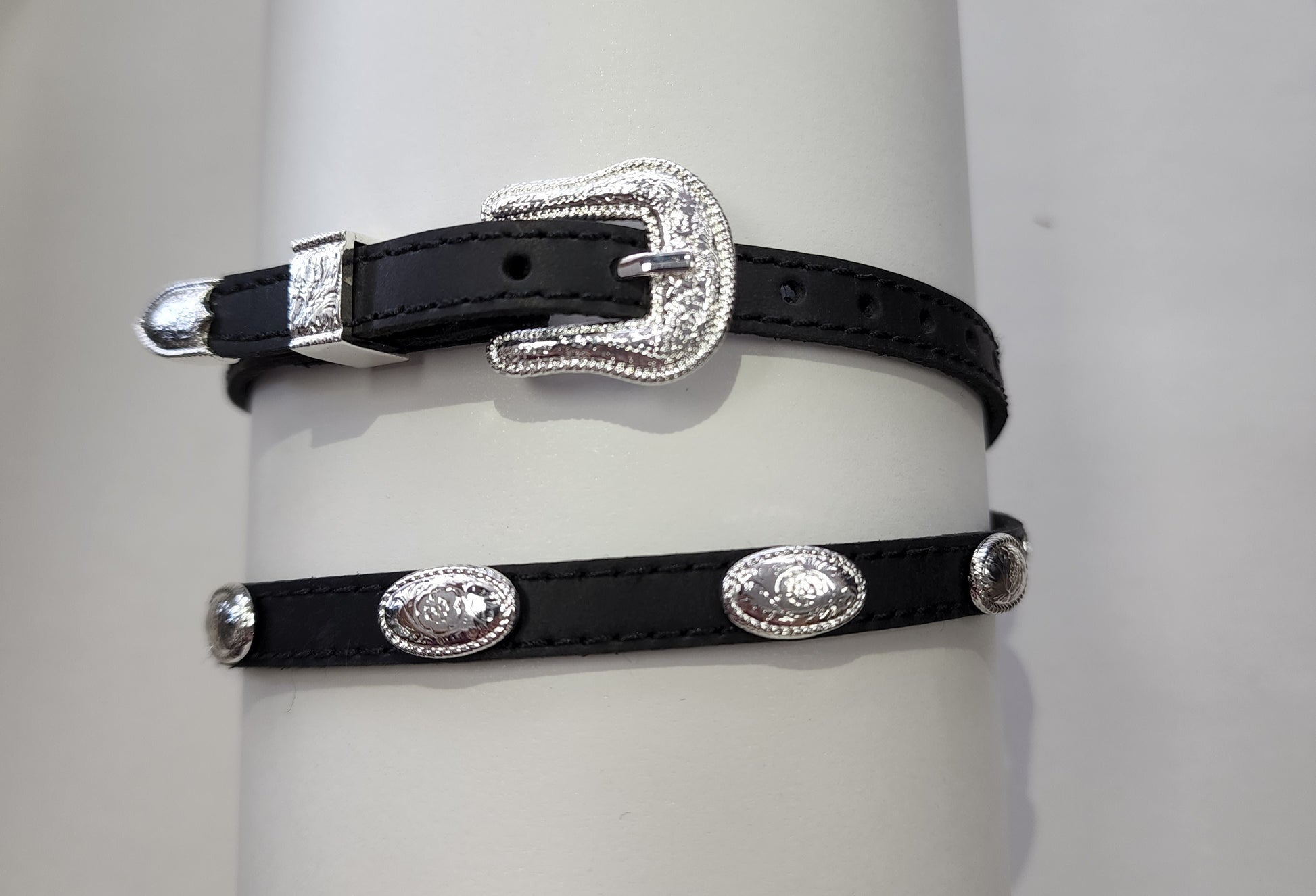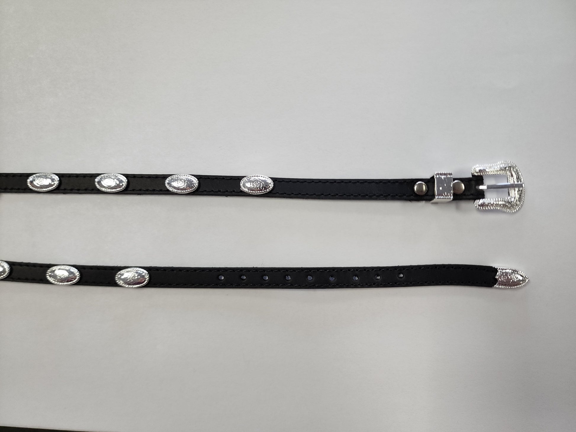 Crea tu propio estilo de sombrero personalizado con esta banda de cuero de M&F Western Products. Los conchos ovalados plateados le dan un toque de estilo western que le dará a tu sombrero un aspecto espectacular. Esta banda se ajusta con un cinturón y una hebilla plateada.