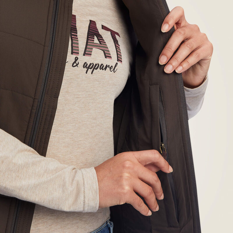 Este chaleco, elegante y funcional, presenta un diseño acolchado de trama cruzada, calidez y comodidad sin volumen. Las costuras princesa y el cordón interior le dan un corte favorecedor. Combina a la perfección con una camiseta de punto de manga larga de tejido técnico.